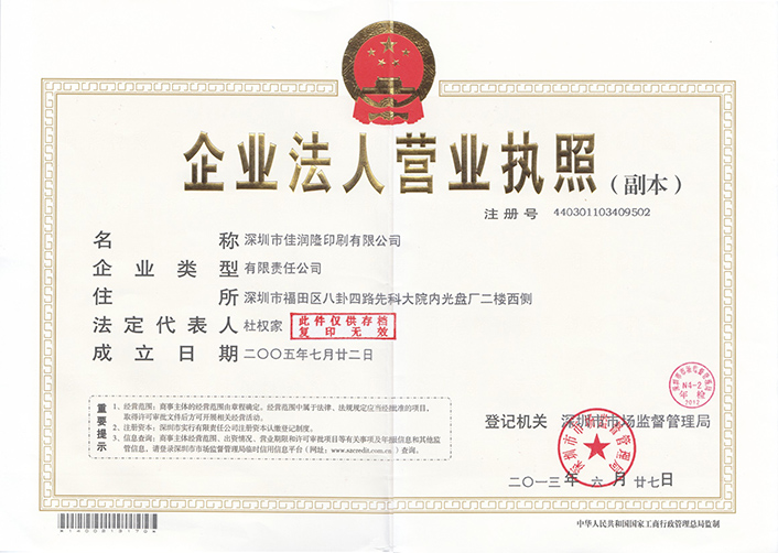 深圳市佳潤隆印刷有限公司是印刷行業(yè)最具規(guī)模的專業(yè)化印刷企業(yè)之一,是集書刊、彩印、包裝、特種印刷為一體的省級書刊定點印刷廠,常年擔(dān)負國家重要生產(chǎn)任務(wù)的骨干印刷企業(yè);是廣東省新聞出版局書刊和人民教育出版社中小學(xué)教材印刷定點廠。企業(yè)現(xiàn)已成為深圳市一級印刷明星企業(yè)之一,是深圳市印刷骨干企業(yè),經(jīng)投標(biāo)被深圳市政